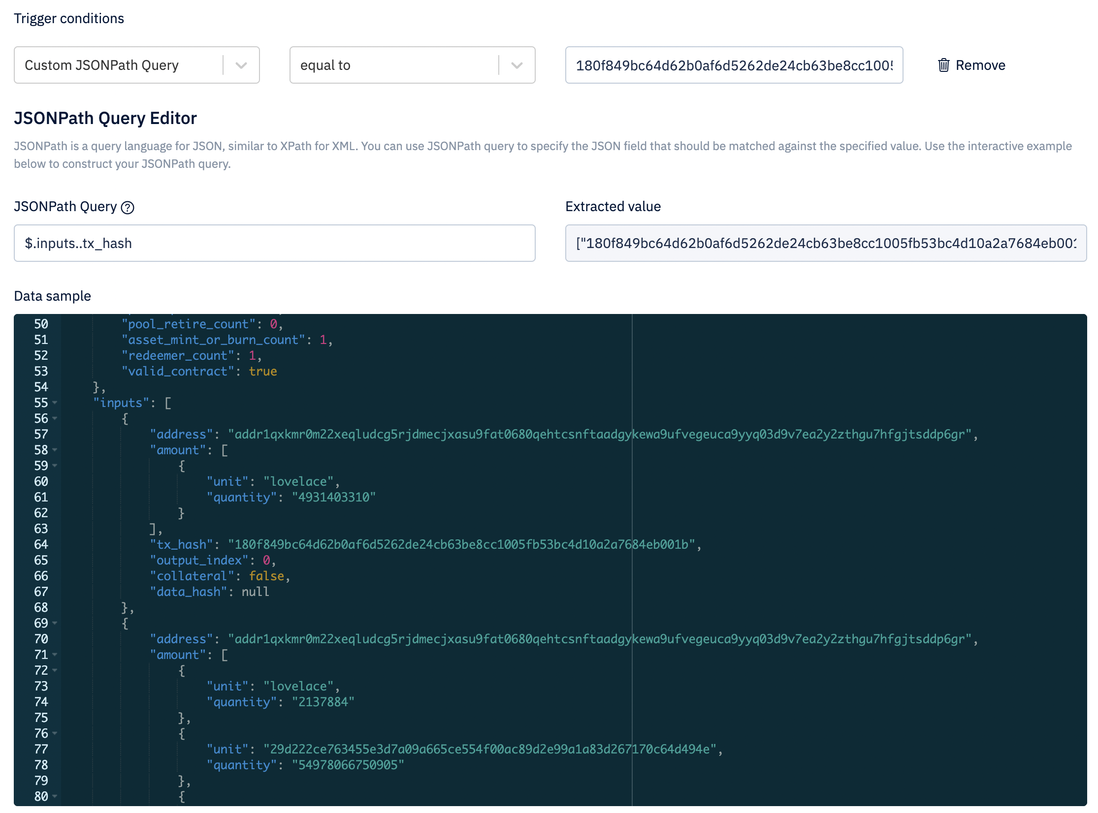 $.inputs..tx_hash - Operator: